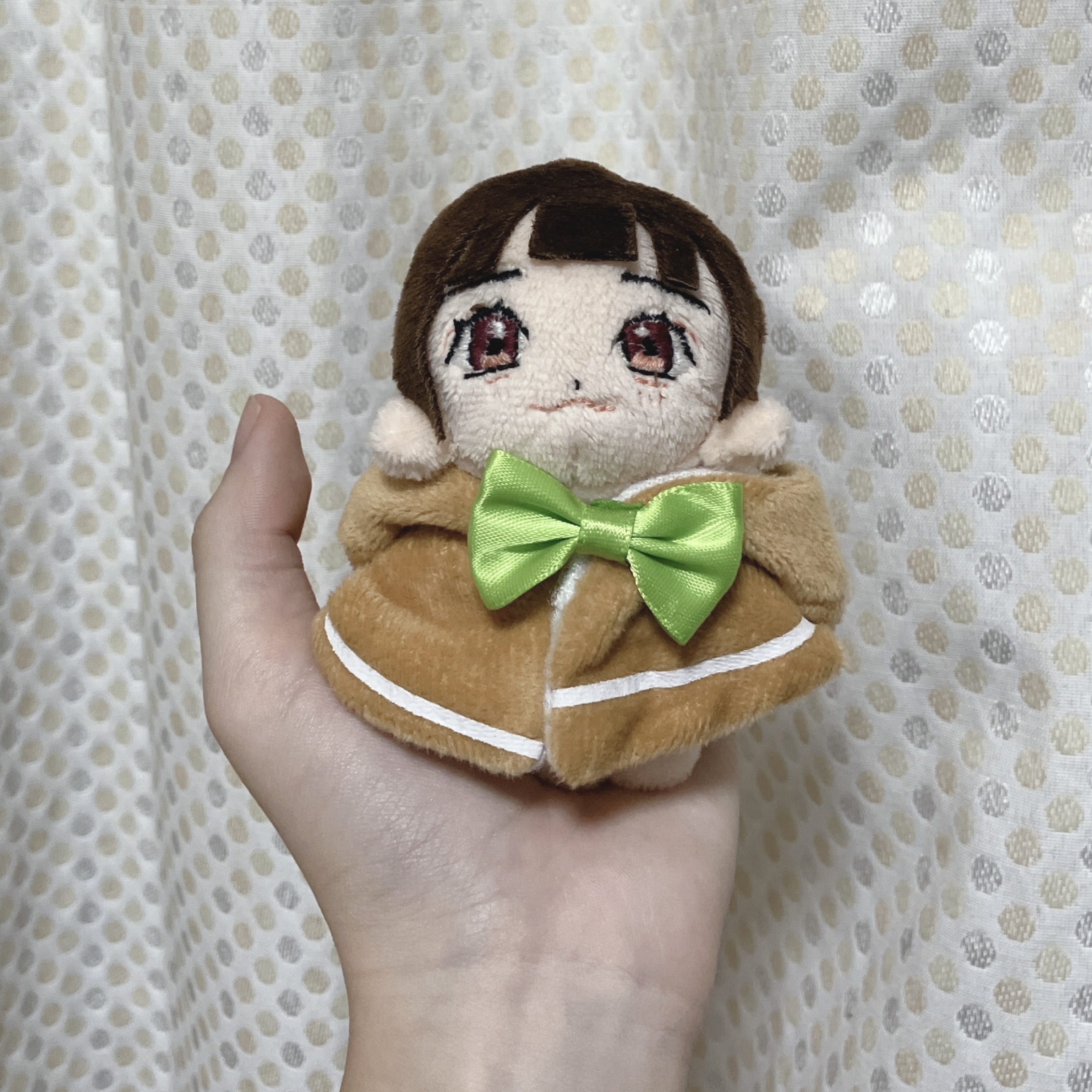 似顔絵と完成したぬいぐるみです。今回は、刺しゅうのふちをなくしてみています。